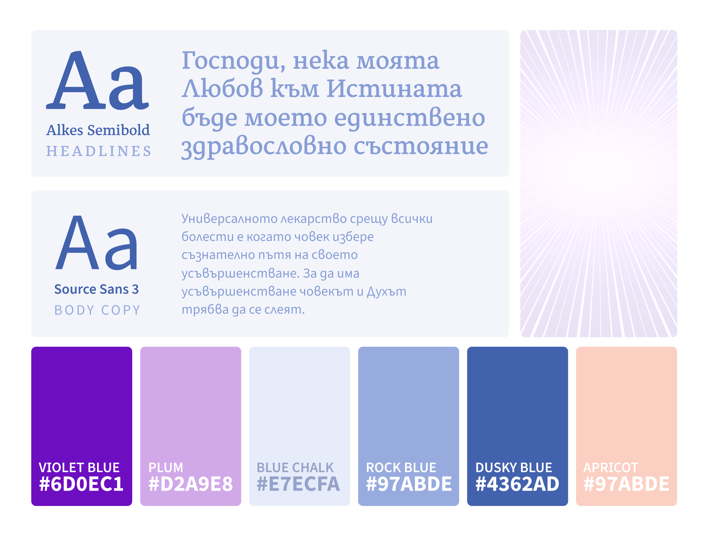 We selected Alkes by Font Fabric for the headlines to ensure it supports Bulgarian Cyrillic. This typeface combines attractive details with a blend of contemporary and traditional styles, making it visually appealing on screen while preserving a timeless quality.