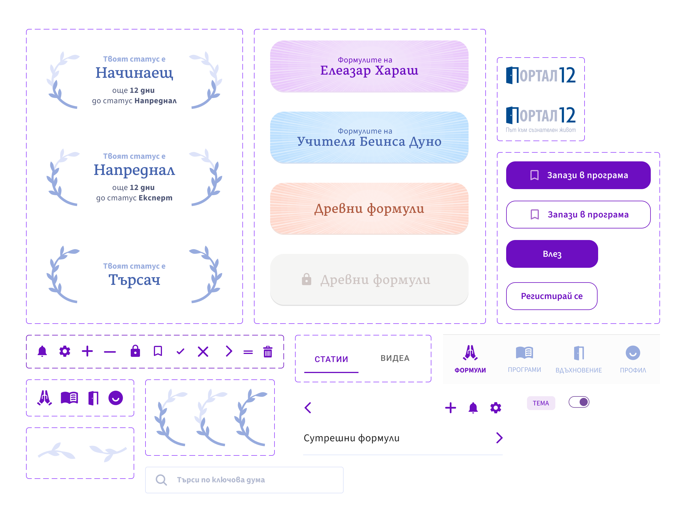 In collaboration with Studio Kipo, we developed the Portal12 — Formulas mobile app for practical work on the path of self-knowledge and spiritual awakening. It offers ready-made or personalized programs with formulas and prayers, organized by key themes, and allows for quickly finding suitable formulas or prayers as needed. The app includes options for adjusting the font size, setting reminders for formulas, and sending push notifications about upcoming events through an administrative panel.